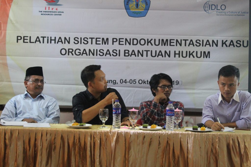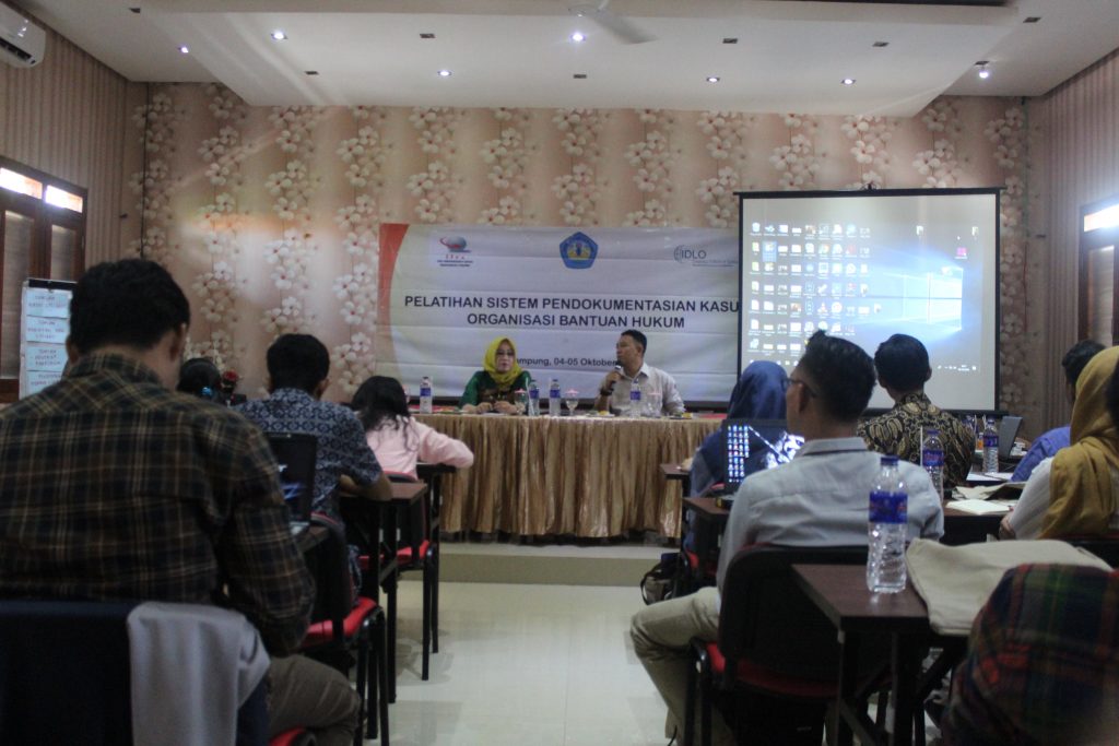 Bandar Lampung – The Indonesian Legal Resources Center (ILRC) bersama Bidang Konsultasi dan Bantuan Hukum Fakultas Hukum Universitas Lampung (BKBH Unila), kembali mengadakan pelatihan bantuan hukum bertempat di Aula Nuwono Tasya Guest House Bandar Lampung, Jumat (4/10/2019). Pelatihan ini bertemakan “Pelatihan Pendokumentasian Kasus Organisasi Bantuan Hukum” kepada 25 peserta dari berbagai Organisasi Bantuan Hukum (OBH) diantaranya, BKBH Unila, LBH Bandar Lampung, Damar Perempuan Lampung, LBH Menang Jagad dan LKBH UM Metro. Kegaiatan dibuka secara simbolis oleh Perwakilan BKBH Unila Rinaldy Amrullah.