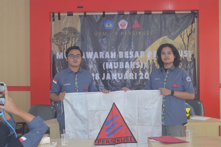 Penyerahan kepengurusan lama kepada Ketua Umum terpilih UKM-F Persekusi atas nama Muhammad Irvan NPM 2052011131.