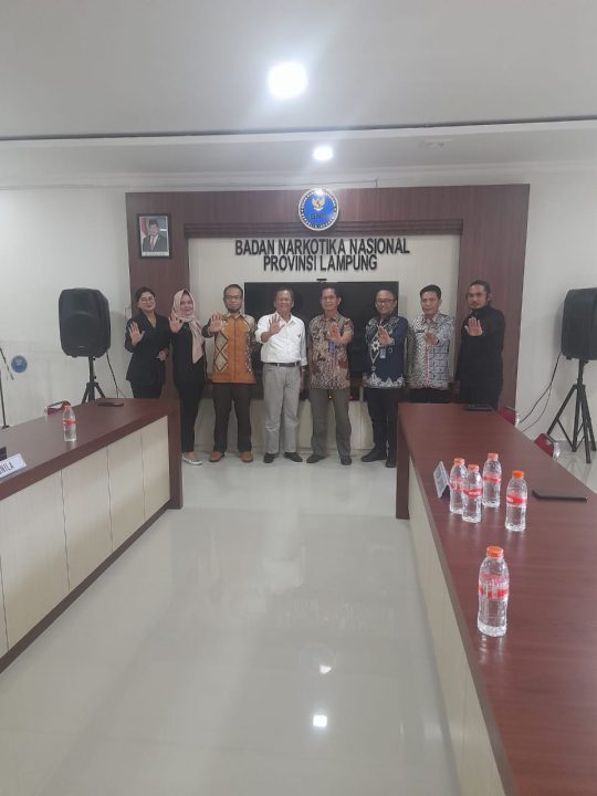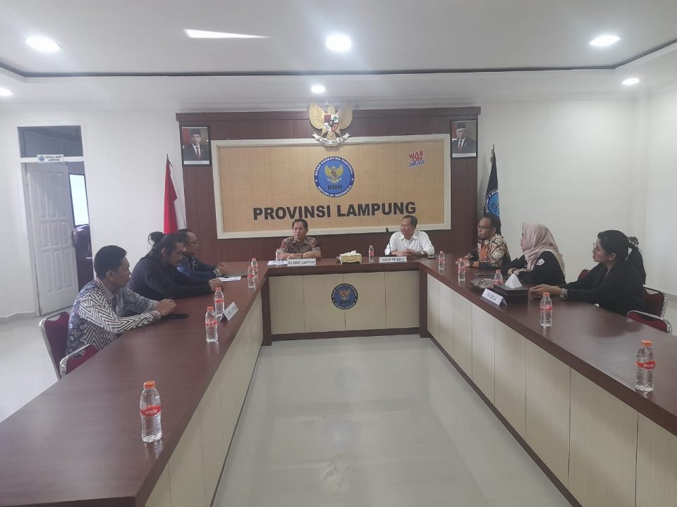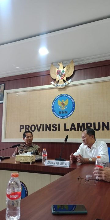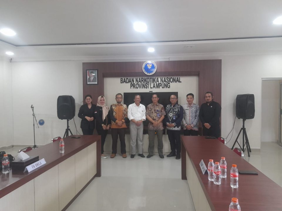 Audiensi antara Dekan FH Unila dihadiri oleh Dr. M Fakih, S.H., M.S & Dr. Rudi Natamiharja, S.H., DEA selaku wakil dekan Bidang Akademik dan Kerjasama beserta tim dengan Plt Kepala BNNP Lampung (Kombes Pol Achmad Iksan, S.IK, S.H., M.Si beserta jajaran)