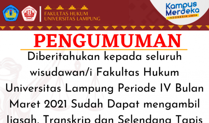 Diinformasikan kepada seluruh mahasiswa yang namanya tercantum dibawah ini untuk dapat menghadap ke Sub Bagian Akademik Fakultas Hukum Universitas Lampung