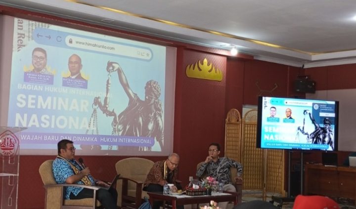 Seminar nasional bertema "Wajah Baru dan Dinamika Hukum Internasional" dilaksanakan pada 11 Oktober 2023 di Fakultas Hukum Universitas Lampung.