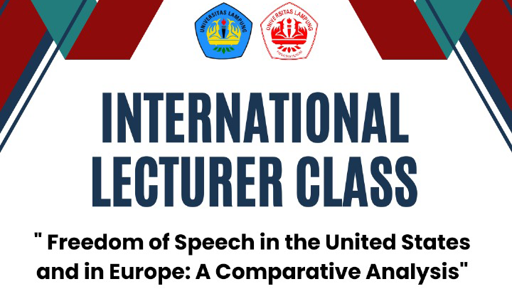 Magister Ilmu Hukum Unila telah melakukan kuliah hukum internasional pada Selasa, 14 Mei 2024 yang diisi oleh dosen tamu dari Universite Paris-Pentheon-Assas, Prof. Idris Fassasi. Kuliah umum tersebut mengusung tema mengenai Freedom of Speech in United State and in Europe: A Comparative Analysis. Sebagaimana disampaikan oleh Prof. Idriss Kebebasan berpendapat merupakan salah satu pilar utama […]