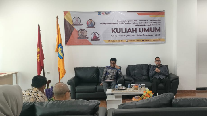 In a public lecture held at Lampung University, the theme "Strengthening the Indonesian Prosecutor's Office in Law Enforcement" was the main focus. The event featured speakers including the Chair of the Indonesian Prosecutor's Commission, Prof. Dr. Pujiyono Suwandi, S.H., M.H., and Heffinur, S.H., M.H., a member of the Commission. They emphasized the important role of the Prosecutor's Commission in supporting the three legal objectives: certainty, justice, and benefit.