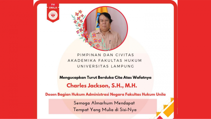Innalillahiwainnailaihi Rojiun, telah berpulang ke Rahmatullah, Dosen Bagian Hukum Administrasi Negara Bapak Charles Jackson, S.H., M.H. Hari Jumat, 12 Maret 2021, sekitar pukul 09.30 WIB, semoga amal ibadah almarhum diterima di sisi Allah SWT.