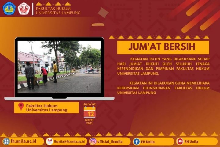 Kegiatan Rutin Yang Dilakukang Setiap Hari Jum'at Diikuti Oleh Seluruh Tenaga Kependidikan Dan Pimpinan Fakultas Hukum Universitas Lampung.Kegiatan Ini Dilakukan Guna Memelihara Kebersihan Dilingkungan Fakultas Hukum Univesitas Lampung
