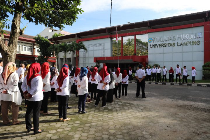Upacara Bulanan Fakultas Hukum Universitas Lampung, Rabu ( 10/04/2019 ) di pelataran parkir Dekanat Gedung C Fakultas Hukum Universitas Lampung. Upacara bulanan ini diikuti oleh seluruh civitas akademika FH Unila dan Wakil Dekan Bid. Umum dan Keuangan, Dr. Hamzah, S.H., M.H. sebagai Pembina Upacara.
