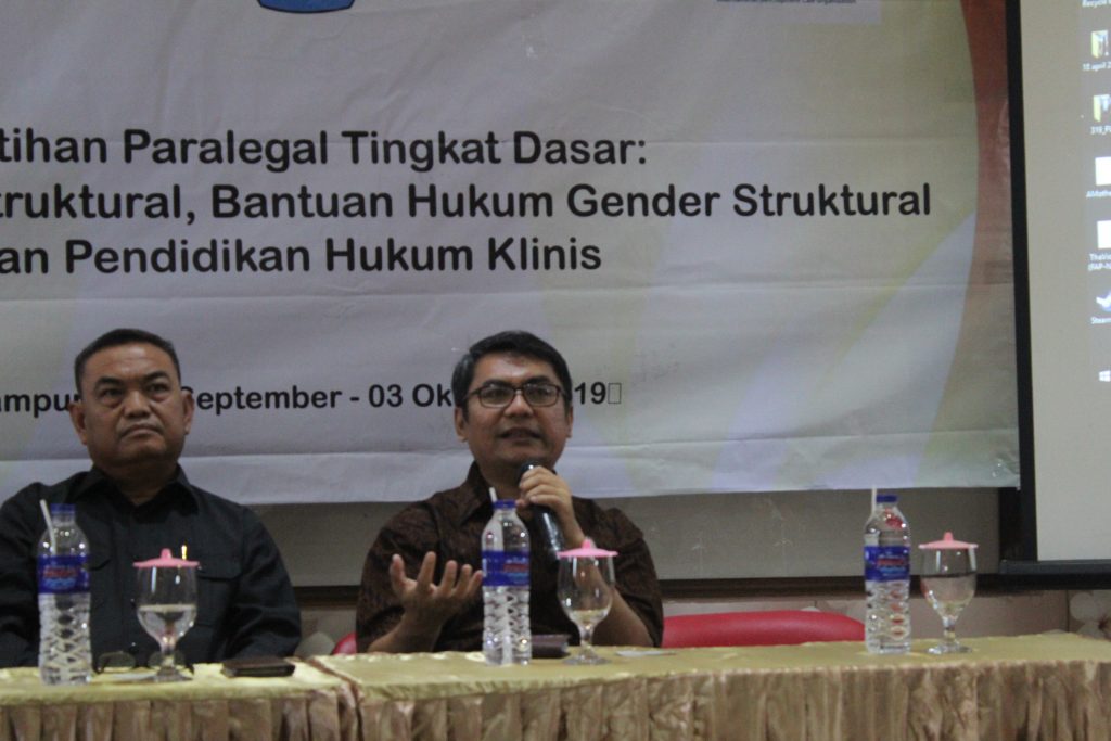 Bandar Lampung – The Indonesian Legal Resources Center (ILRC) bersama Bidang Konsultasi dan Bantuan Hukum (BKBH) Fakultas Hukum Universitas Lampung menyelenggarakan Pelatihan Paralegal Tingkat Dasar: Bantuan Hukum Struktural, Bantuan Hukum Gender Struktural dan Pendidikan Hukum Klinis, bertempat di Aula Nuwono Tasya Bandar Lampung, Senin (30/9/2019).