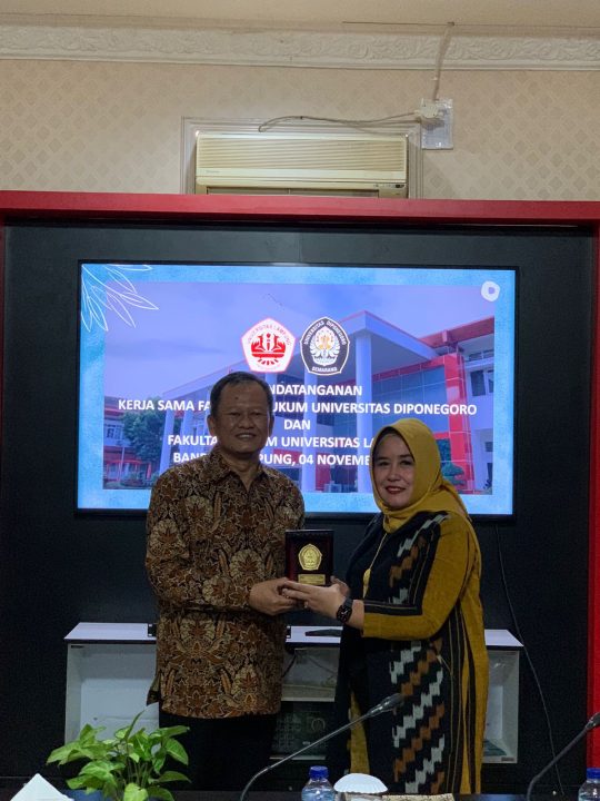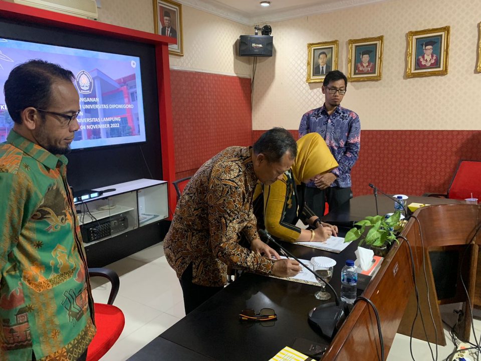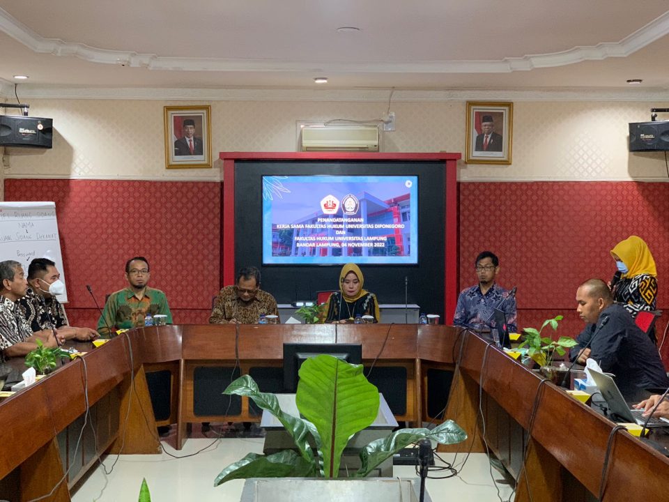 Bandar Lampung. FH Unila menerima kunjungan Fakultas Hukum Universitas Diponegoro (FH Undip) pada 4 November 2022. Kunjungan tersebut disambut oleh Dekan FH Unila, Dr. M. Fakih, S.H., M.S., beserta jajarannya yang terdiri para wakil dekan, para Ketua Bagian, Ketua Program Studi S2 dan Ketua Program Studi S3.