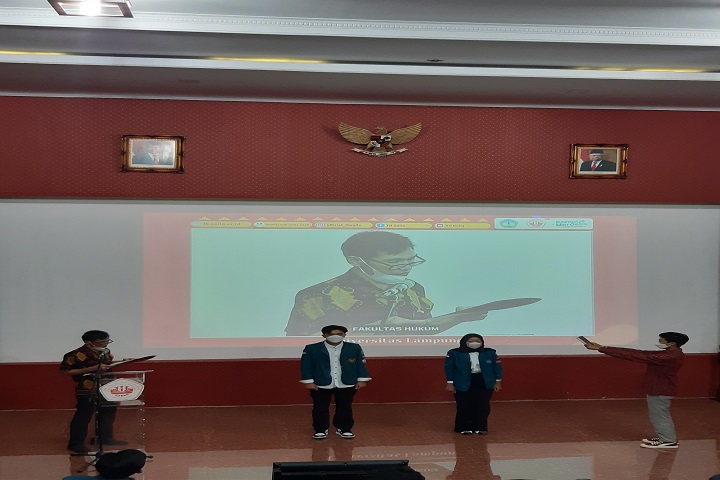 Pembacaan Surat Keputusan Pelantikan Anggota DPM dan Gubernur, Wakil Gubernur BEM Fakultas Hukum Unila Periode 2021/2022 oleh Sub Koordinator Kemahasiswaan dan Alumni