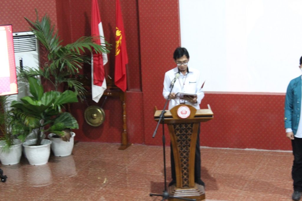 Koordinator Sub. Bagian Kemahasiswaan dan Alumni Lusi Susanti, S.E. Beliau membacakan SK Dekan tentang Pelantikan Ketua Umum Organisasi Kemahasiswaan di lingkungan Fakultas Hukum Universitas Lampung, yang mana isi SK Dekan tersebut Menimbang, Mengingat, Memutuskan yang di tetapakan oleh Dekan Fakultas Hukum Universitas Lampung.