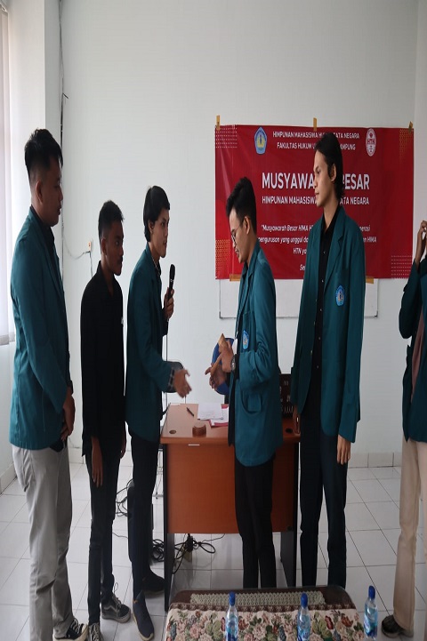 Penyerahan Jabatan dari Ketua Umum Hima HTN lama ke Ketua Hima HTN baru kepada saudara Syarif Anwar Said Al-Hamid NPM. 1912011221