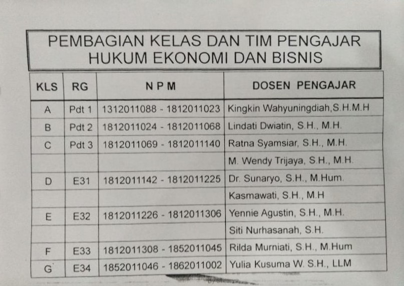 PENGUMUMAN MATA KULIAH HUKUM BISNIS & EKONOMI