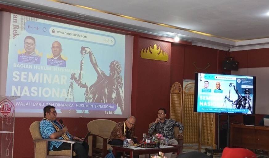 Seminar nasional bertema “Wajah Baru dan Dinamika Hukum Internasional” dilaksanakan pada 11 Oktober 2023 di Fakultas Hukum Universitas Lampung. Kegiatan ini menghadirkan dua pemateri: Adrianus Adityo Vito Ramon, S.H., M.H., dosen hukum internasional dari Universitas Katolik Parahyangan, dan Prof. Atip Latipulhayat, S.H., LL.M., Ph.D., guru besar hukum internasional dari Universitas Padjadjaran. Melalui presentasi dan diskusi interaktif, seminar ini bertujuan untuk memberikan wawasan mendalam mengenai perkembangan terkini dan tantangan dalam hukum internasional.