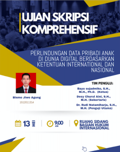 Bagi Mahasiswa Bagian Hukum Internasional Yang Ingin Hadir Pada Ujian Komperehensif Mahasiswa Bismo Jiwo Agung Di Ruang Sidang Bagian Hukum Internasional Fakultas Hukum Universitas Lampung, Pada Hari Selasa Tanggal 13 Mei 2019, Pukul 09.00 WIB dipersilahkan. Terimakasih.