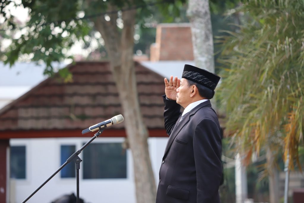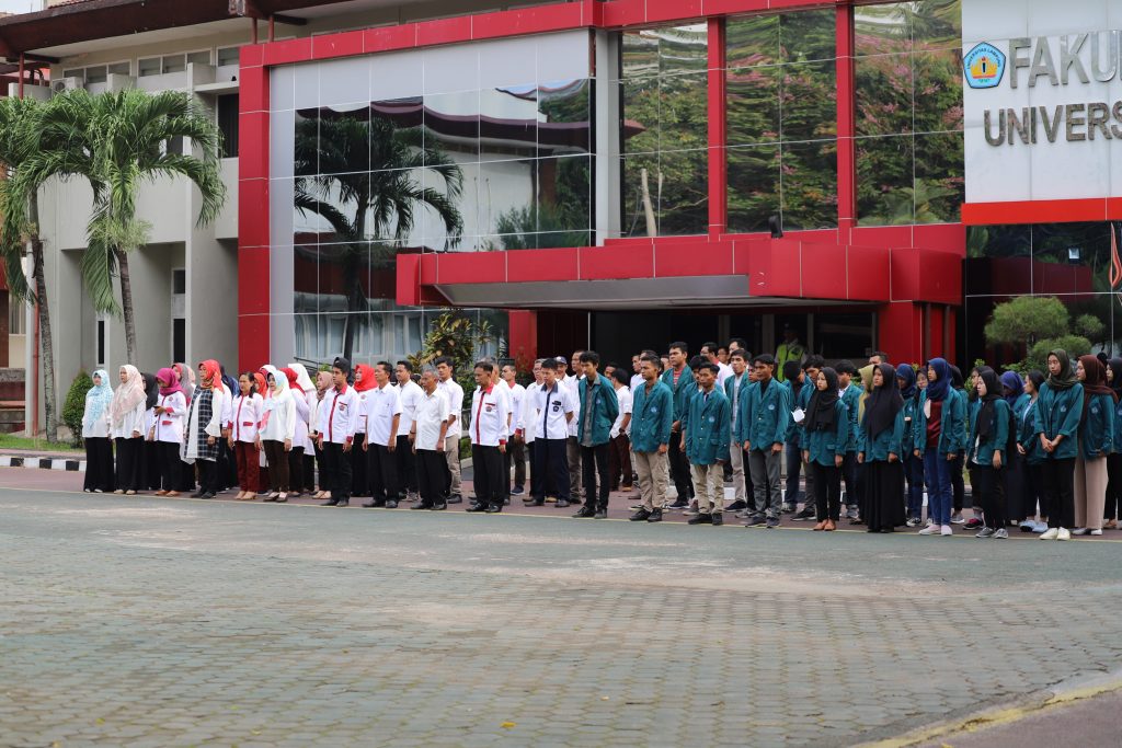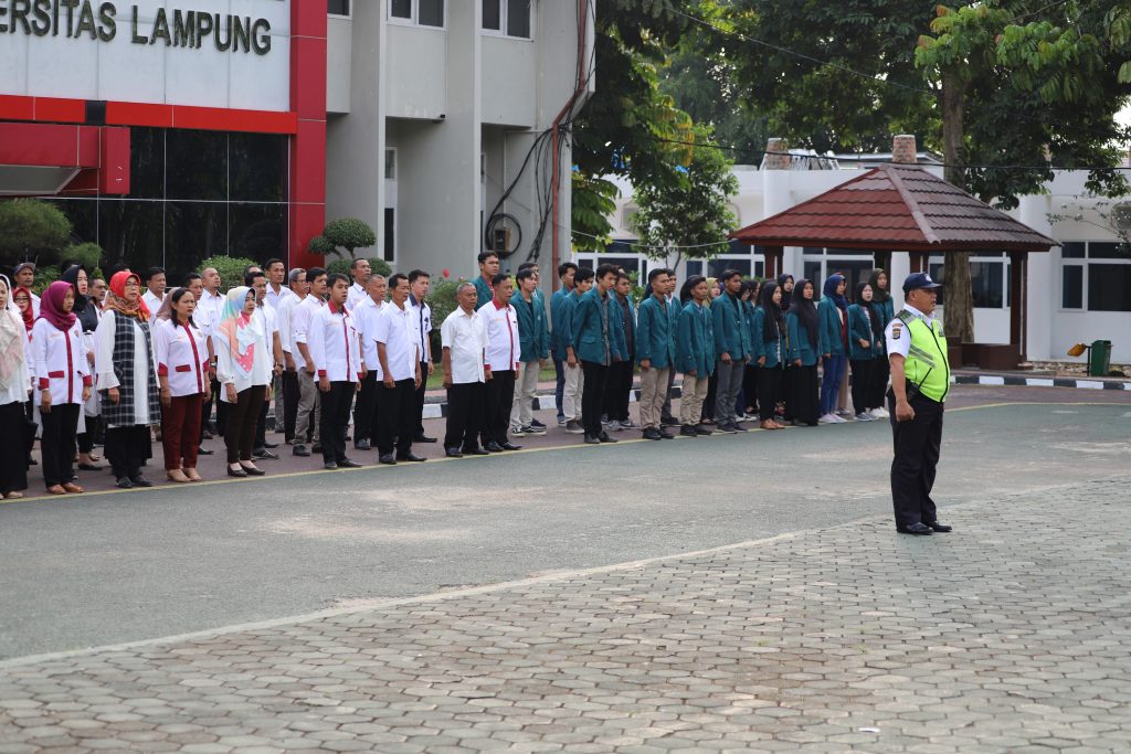 Upacara Bulanan Fakultas Hukum Unila diselenggarakan di Pelataran Parkir Gedung Dekanat FH Unila, Rabu (4/03/2020).