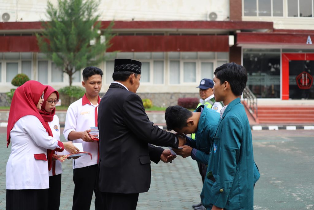 Pada Kesempatan ini Wakil Dekan Bidang Akademik dan Kerjasama FH Unila, Prof. dr. I Gede AB Wiranata, S. H., M. H. menjadi Pembina Upacara sekaligus memberi penghargaan kepada mahasiswa Bidik Misi angkatan 2019 yang meraih IP tertinggi a.n Muhammad Arif (1912011156), dan Kingstone Simbolon (1912011023).