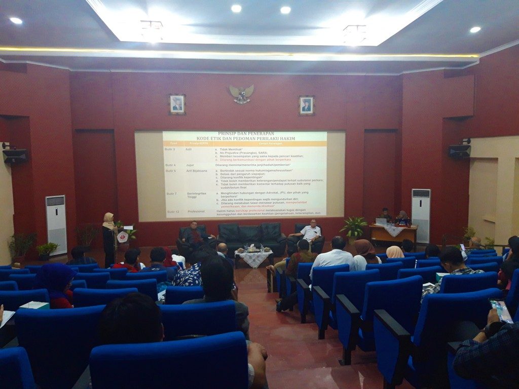 Sukma Violetta menyampaikan bahwa saat ini, fokus reform di dunia peradilan seharusnya tidak lagi menitik beratkan kepada independensi kekuasaan kehakiman tetapi justru mengembalikan kepercayaan publik. Bahwa prinsip independensi tidak pernah berdiri sendiri, dmna ada independensi maka disitu pula terhadap akuntabilitas yang sama pentingnya untuk juga diperjuangankan. Tegas ibu Sukma di akhir pemaparannya “Kami himbau kepada seluruh masyarat apabila ada perilaku hakim yang tidak independen mohon di laporkan kepada KY”