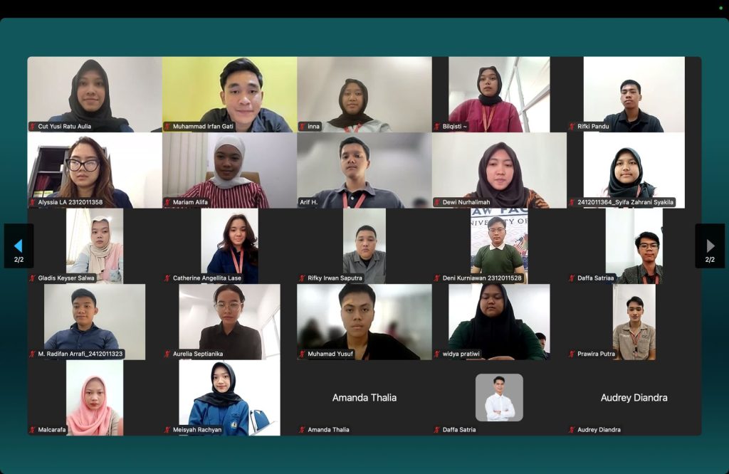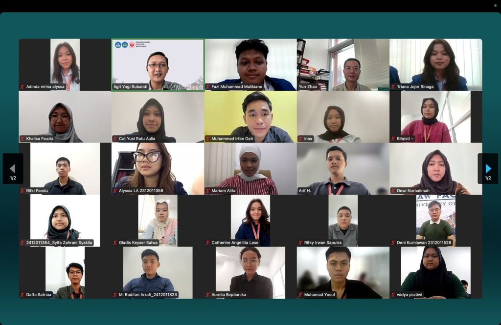 Perkuliahan online yang dilakukan sangat hikmat yang diikuti oleh mahasiswa kelas internasional 2023 dan batch 2024. Mahasiswa kelas internasional secara aktif berdiskusi dengan Prof. Yun zhao terkait perkembangan hukum udara yang selama ini terjadi serta memepertanyakan otoritas satelit yang rusak.