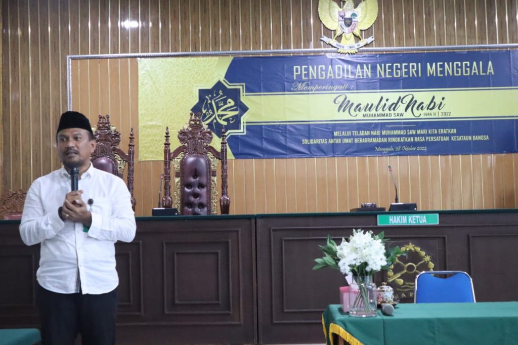 Setelah memperingati Upacara Hari Sumpah pemuda, Pengadilan Negeri Menggala (PN Menggala) juga memperingati Maulid Nabi Muhammad SAW 1444 Hijriah. Agenda ini dilaksanakan pada pukul 10.00 WIB. Tema yang diusung pada acara ini adalah “Melalui Teladan Nabi Muhammad SAW Mari Kita Eratkan Solidaritas Antar Umat Beragama Dan Tingkatkan Rasa Persatuan Kesatuan Bangsa”.