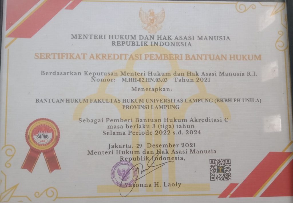 SERTIFIKAT AKREDITASI BKBH FH UNILA